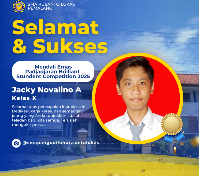 SMA PL Santo Lukas Pemalang bangga mengumumkan prestasi gemilang dari siswa kelas X, Jacky Novalino Apriyatna, yang berhasil meraih Medali Emas dalam ajang Padjadjaran Brilliant Student Competition 2025! Prestasi ini adalah bukti dari dedikasi, kerja keras, dan semangat belajar yang luar biasa. Jacky, kamu adalah teladan bagi teman-temanmu! Teruslah berkarya […]