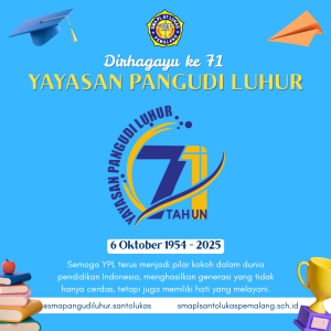 Selamat ulang tahun emas ke-71, Yayasan Pangudi Luhur! Tema tahun ini, MENGGAPAI CAHAYA, MENEBAR CITA-CITA, sangat menginspirasi. Tema ini mengingatkan kita akan perjalanan panjang Yayasan dalam memberikan pendidikan berbasis nilai. Semoga YPL terus menjadi pilar kokoh dalam dunia pendidikan Indonesia, menghasilkan generasi yang tidak hanya cerdas, tetapi juga memiliki hati yang melayani.